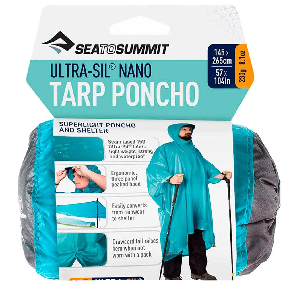 Questo poncho/telo tutto in uno è stato realizzato in tessuto 15D Ultra-Sil® Nano, che lo rende leggero e impermeabile. Grazie al peso minimo, all’estrema compattezza e alla grande versatilità, l’Ultra-Sil® Nano Tarp Poncho è un accessorio indispensabile quando si parte per un’avventura. Questo poncho è adatto per l’uso in climi caldi dove una giacca impermeabile sarebbe soffocante. Questo poncho quadrato funziona anche come telo/rifugio da bivacco in caso di emergenza. Dimensioni: 140 x 260 cm. Peso: 230 g.